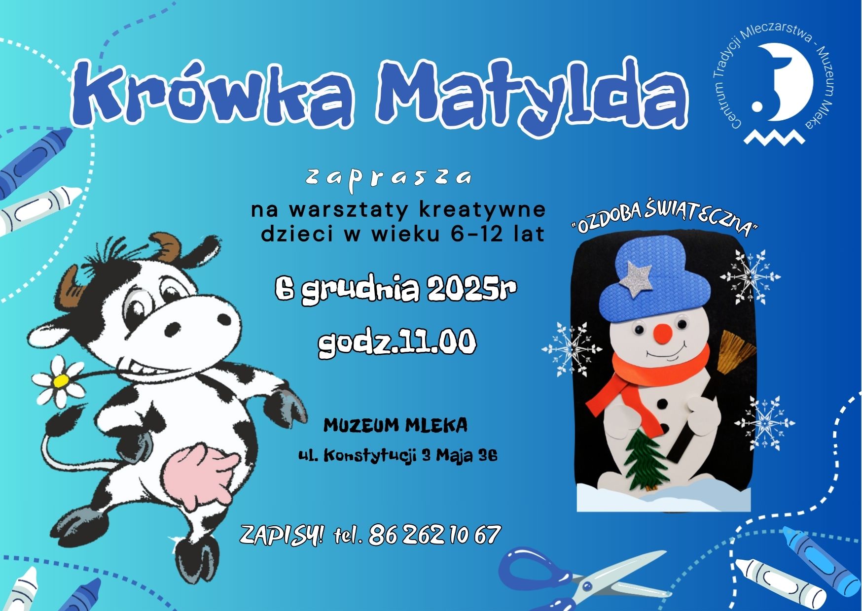 Centrum Tradycji Mleczarstwa – Muzeum Mleka w Grajewie, oddział Grajewskiego Centrum Kultury serdecznie zaprasza dzieci w wieku 6-12 lat na spotkanie z Krówką Matyldą, które odbędzie się
