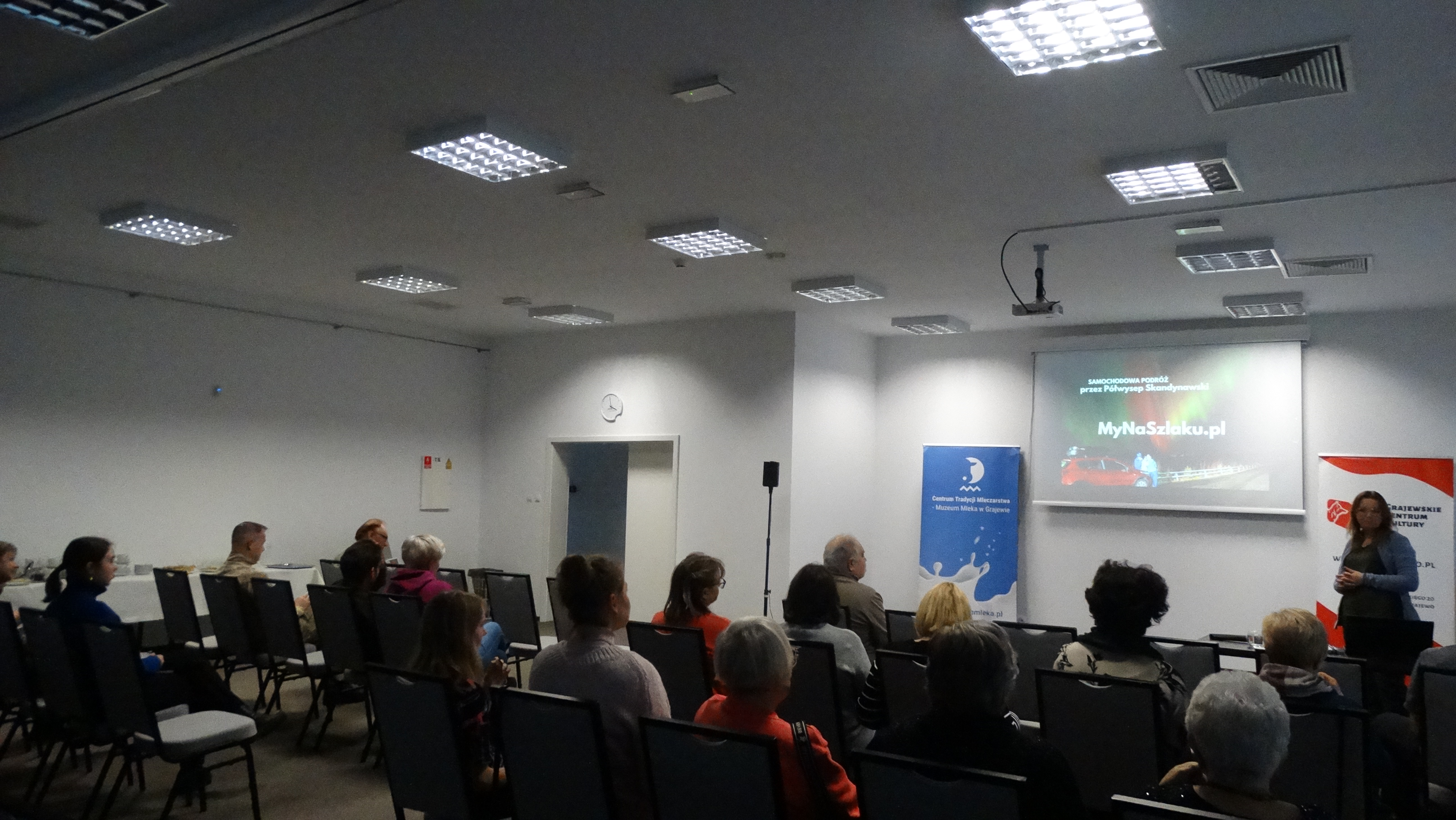 W dniu 29 listopada 2025 r. w Centrum Tradycji Mleczarstwa – Muzeum Mleka w Grajewie, Oddział Grajewskiego Centrum Kultury odbyła się prelekcja podróżnicza „Półwysep Skandynawski – Finlandia, Szwecja, Norwegia”, którą poprowadzili podróżnicy Angelika, Mateusz i Maja Grzegorzek, autorzy bloga MyNaSzlaku.pl https://mynaszlaku.pl/