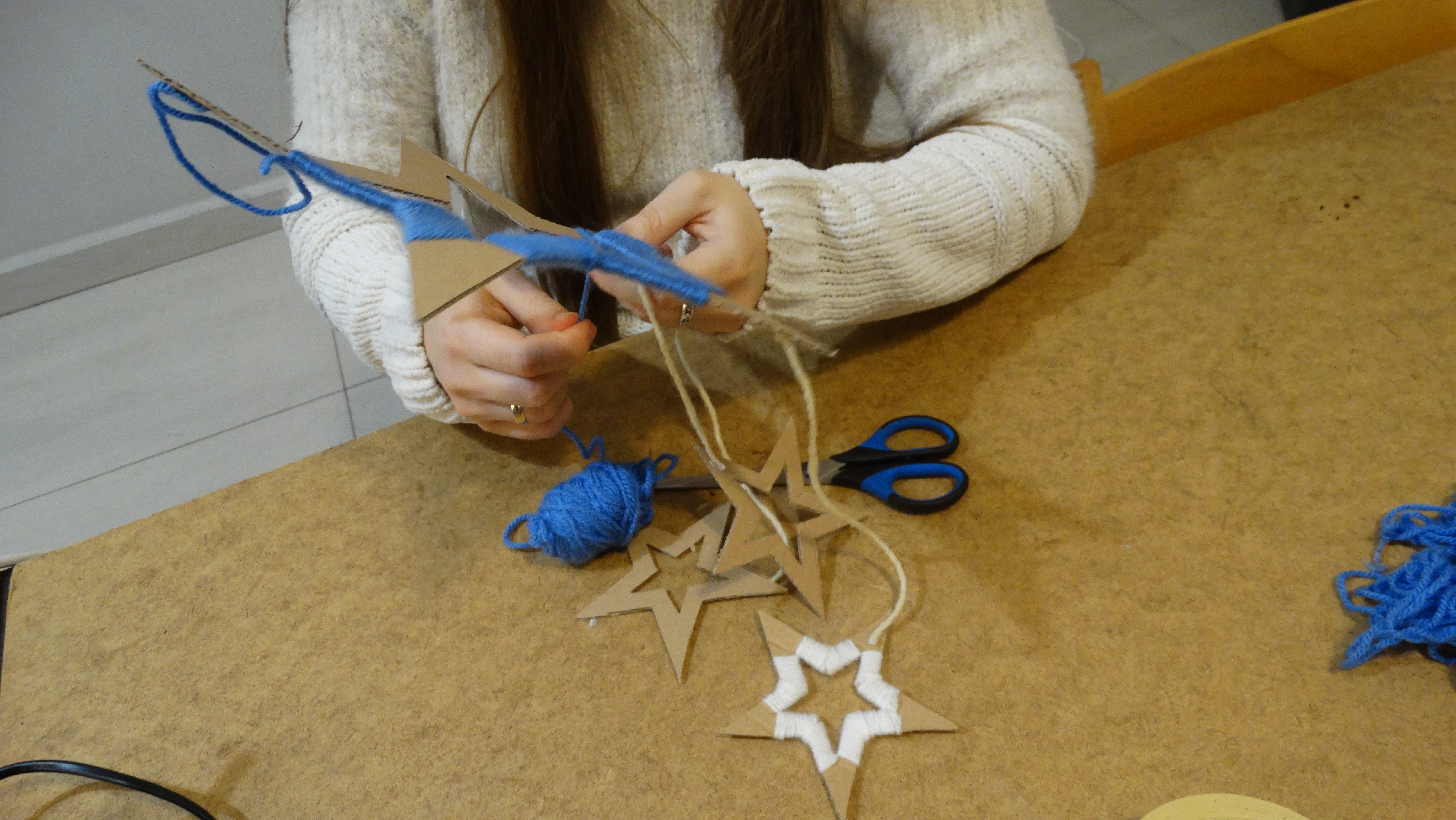 Uczestnicy wydarzenia wykonali bożonarodzeniową ozdobę – „Świąteczne gwiazdy”. Zobaczcie jak pięknie im wyszły!
