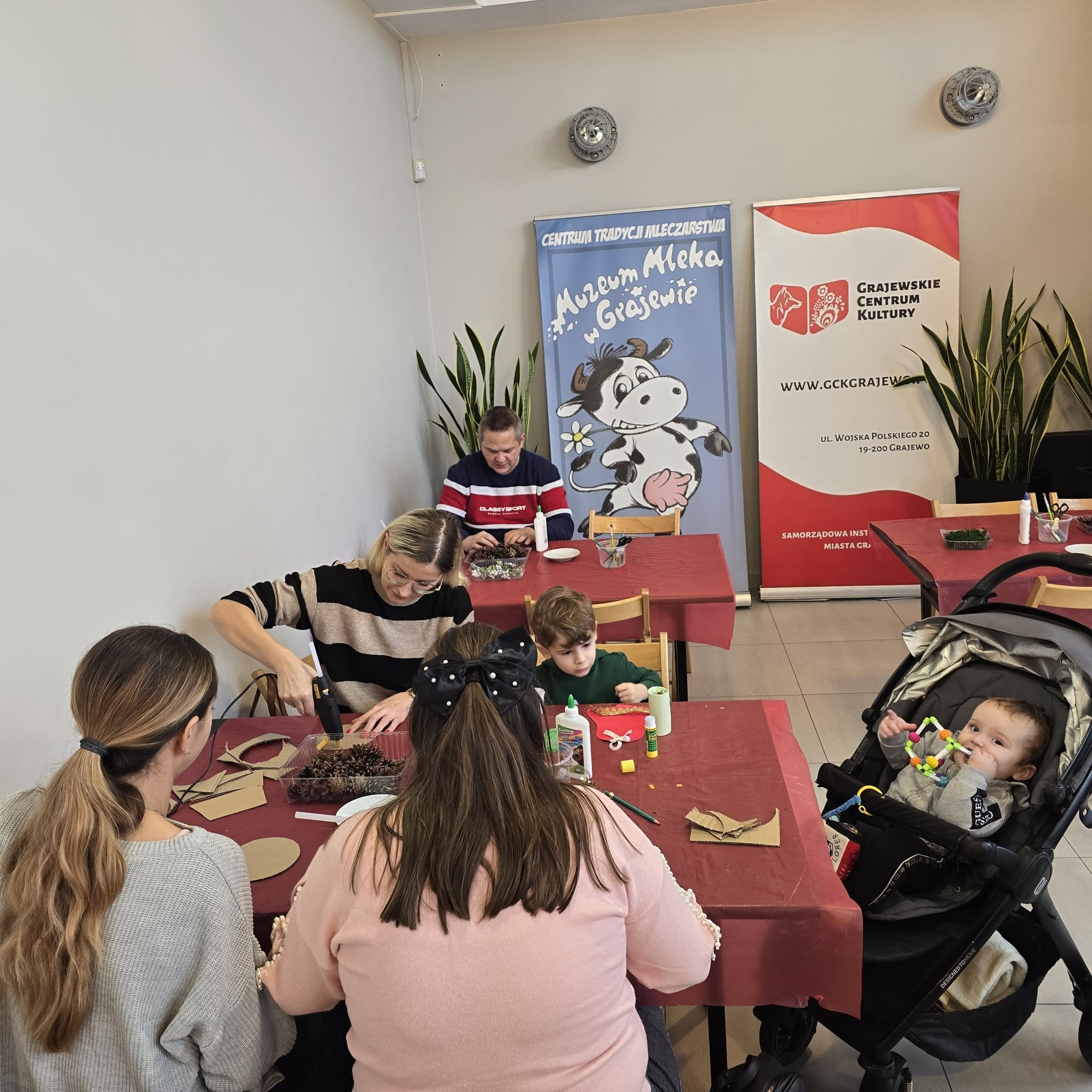 Za nami wyjątkowa, ostatnia w tym roku kalendarzowym Sobota z Krówką Matyldą. Spotkanie upłynęło w ciepłej, radosnej atmosferze. Równolegle odbywały się zajęcia dedykowane dzieciom (w każdym wieku) i ich rodzicom. Najmłodsi uczestnicy wykonali świąteczne dekoracje, zaś rodzice świąteczne stroiki. Dzieci chętnie uczestniczyły w proponowanych aktywnościach, wykazując się dużym zaangażowaniem, kreatywnością i radością ze wspólnie spędzonego czasu.