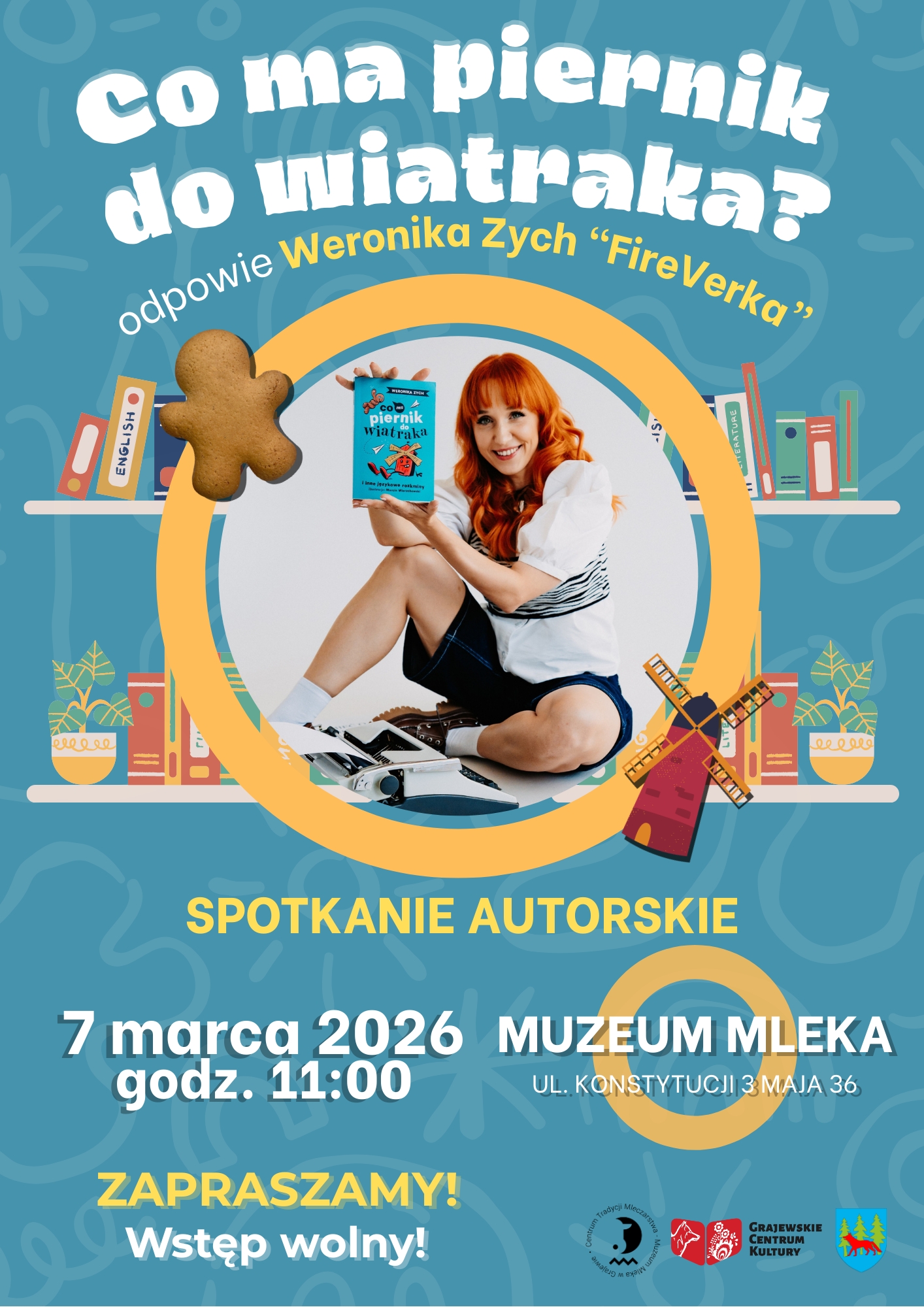 Centrum Tradycji Mleczarstwa – Muzeum Mleka w Grajewie (oddział Grajewskiego Centrum Kultury) zaprasza na wyjątkowe spotkanie z grajewianką, filolożką i jedną z najpopularniejszych popularyzatorek języka polskiego w sieci – Weronika Zych „Fireverką”. Spotkanie poprowadzi Pani Aleksandra Borawska.