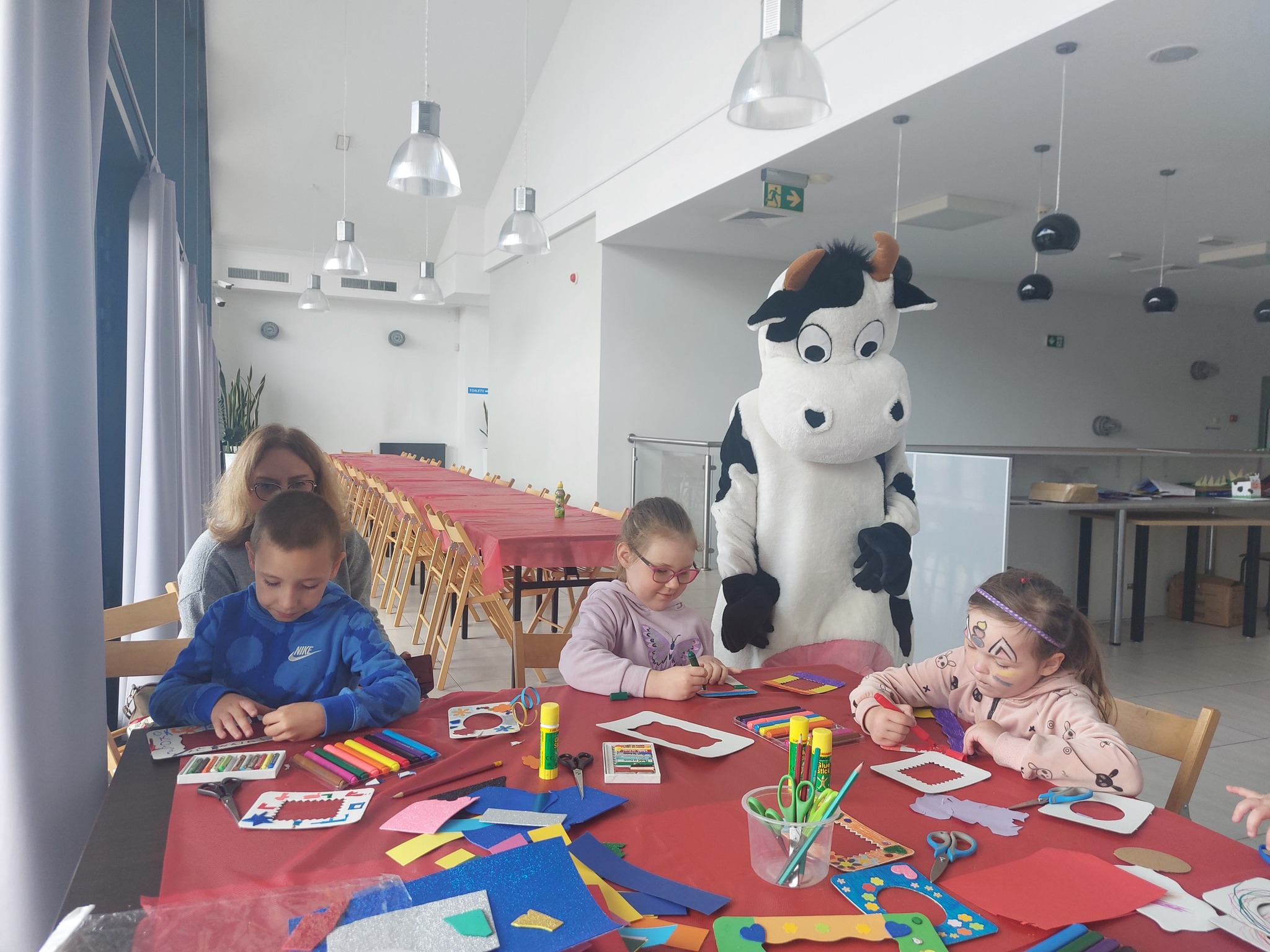 Dzisiejsze przedpołudnie rozpoczęliśmy w Muzeum Mleka od rodzinnego spotkania z Krówką Matyldą. Z okazji zbliżającego się Dnia Matki, najmłodsi uczestnicy warsztatów przygotowali ramki do zdjęć, a dorośli szyli przytulanki dla swoich pociech. Również nasza Krówka Matylda wpadła na kilka zdjęć. Prace jak zawsze wyszły super, a my dziękujemy za uczestnictwo i zapraszamy na kolejne wydarzenia.