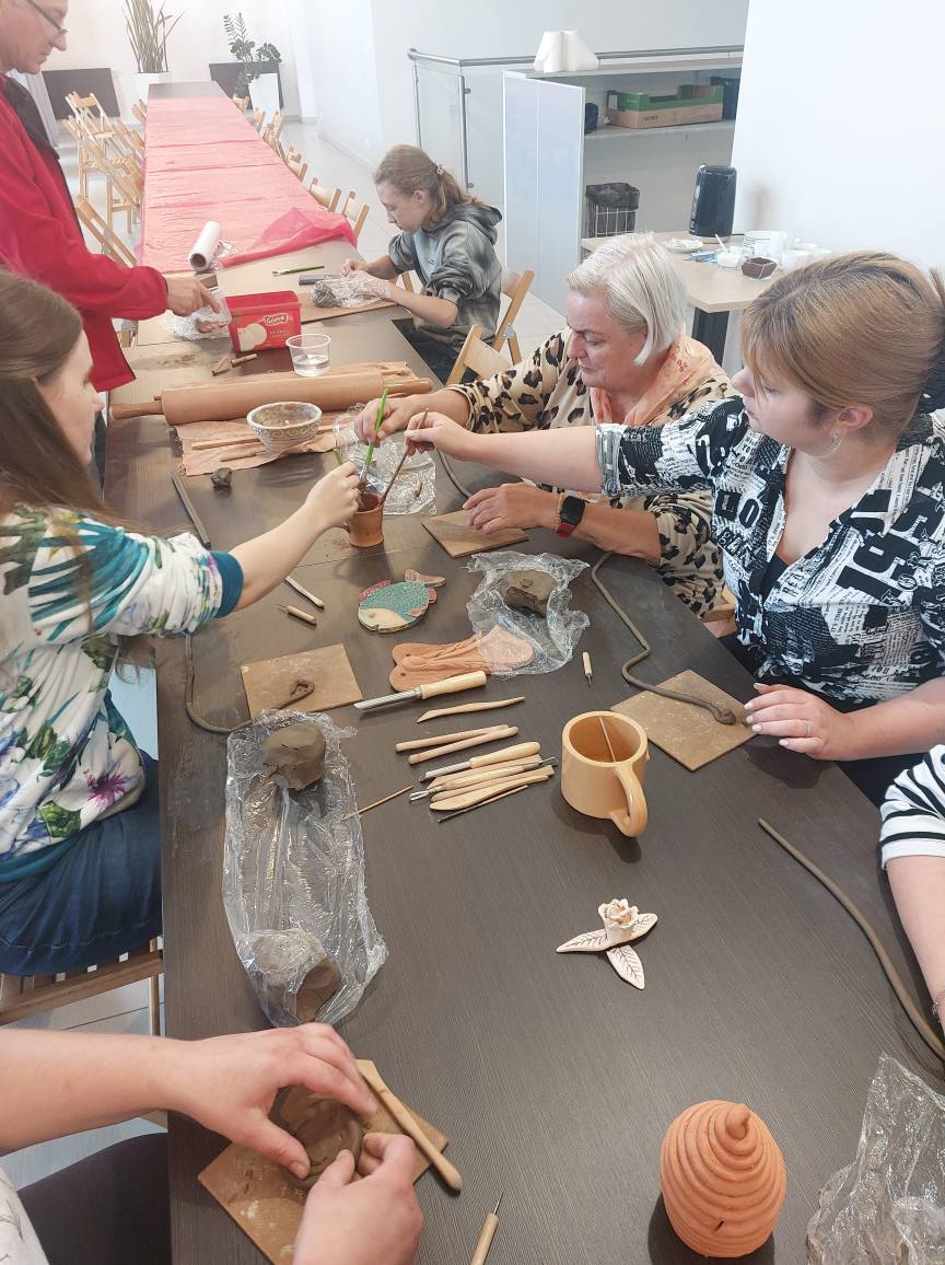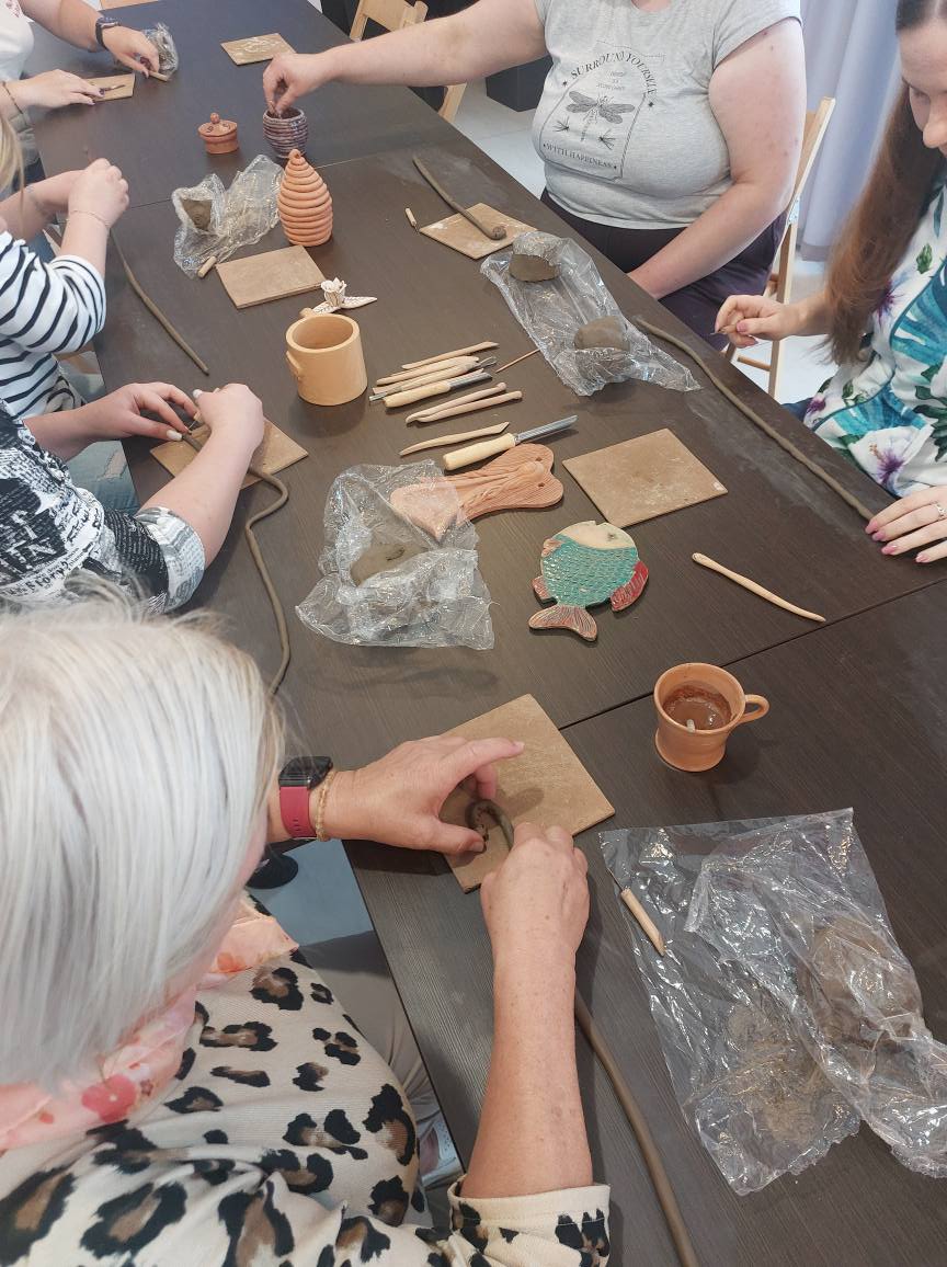 Wróciliśmy..... Po wakacyjnej przerwie w Muzeum Mleka odbyły się warsztaty dla dorosłych. W miłej atmosferze pod okiem Pana Radka tworzyliśmy piękne prace z gliny. Panie jak i najmłodsza uczestniczka warsztatów wykazały się ogromną cierpliwością i kreatywnością. Nasze prace czeka jeszcze etap wypalania, zanim trafią w ręce artystów. Zobaczcie sami jakie już piękne są, a my zapraszamy na kolejne warsztaty